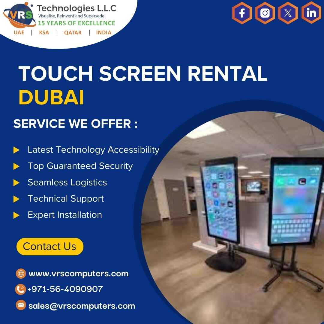 Teams managing exhibitions or promotional setups benefit Touch Screen Rental Dubai, while VRS Technologies LLC ensures everyunit is calibrated for smooth interaction and reliable uptime, helping brands communicate information effectively throughout busy schedules when you call +971564090907.