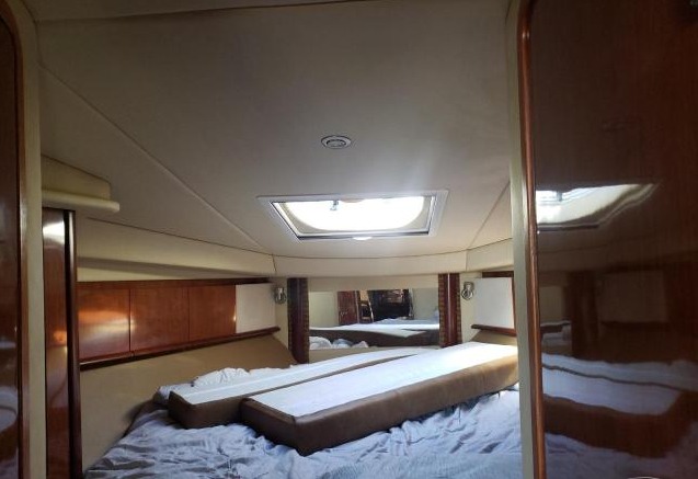 Comfortable forward cabin with natural lighting
