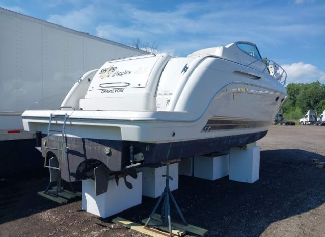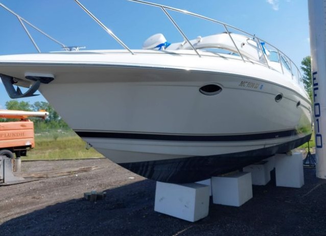 Boat is properly stored on blocks and well-maintained