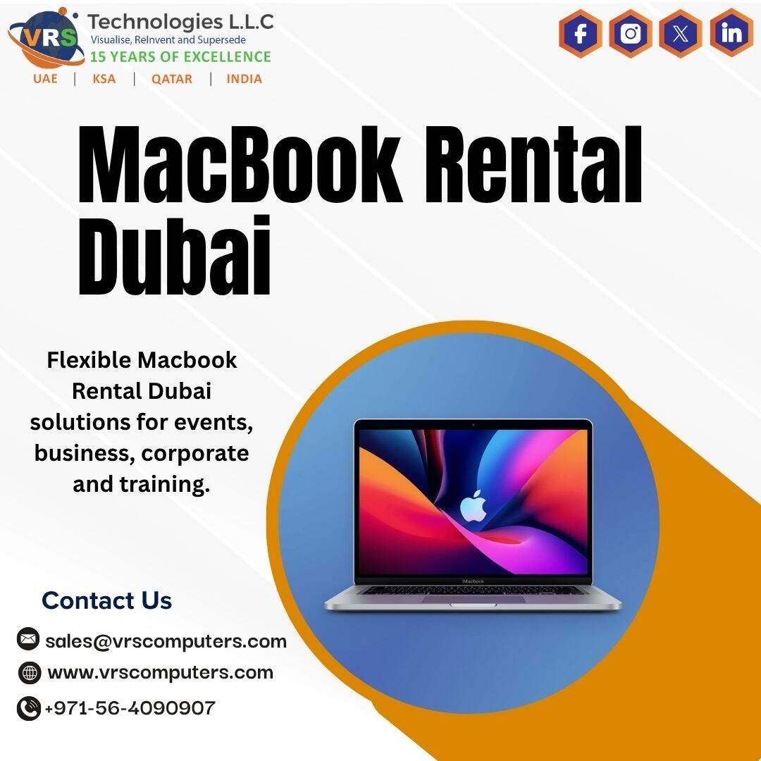 Premium Apple laptops for urgent presentations, creative work or corporate events. VRS Technologies LLC offers Macbook Rental Dubai with same day delivery across Dubai, pre configured software, protective cases and full technical support included. Call +971564090907.