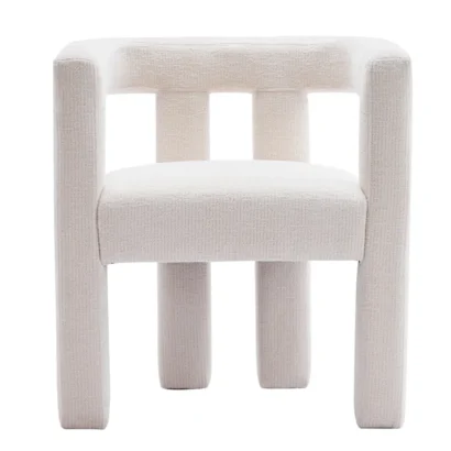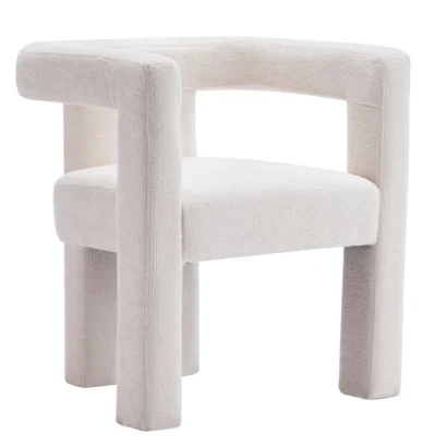 Elevate your interior with the Silton Modern Accent Chair, a perfect blend of minimal design and comfort. Wrapped in soft cream-white chenille fabric, this chair offers a plush seat with a solid barrel-shaped backrest that’s both bold and supportive.