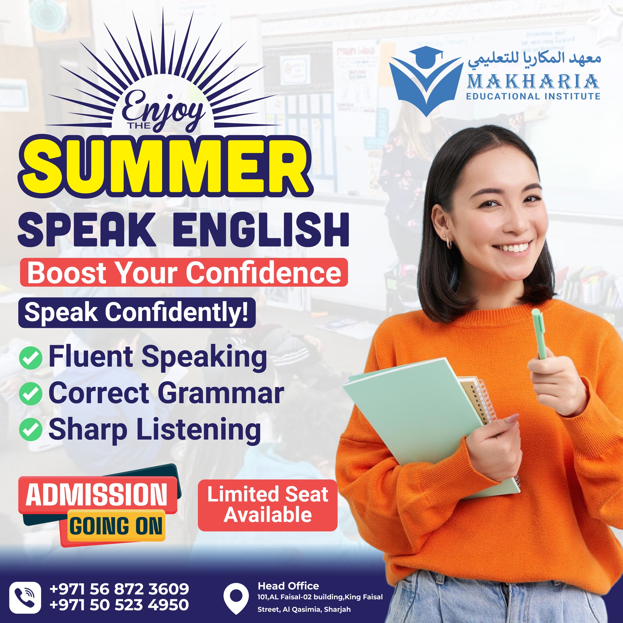 Looking to improve your English skills and achieve success in studies, work, or daily life? At Makharia Institute, we offer the best English classes in Sharjah, designed for learners of all ages and levels. Our goal is to make English simple, practical, and fun while helping you gain the confidence to communicate effectively in any situation.